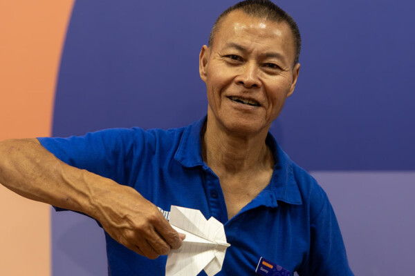 Scitech volunteer Sanny Ang is sharing his love of innovation and design-thinking with a very unique paper plane.