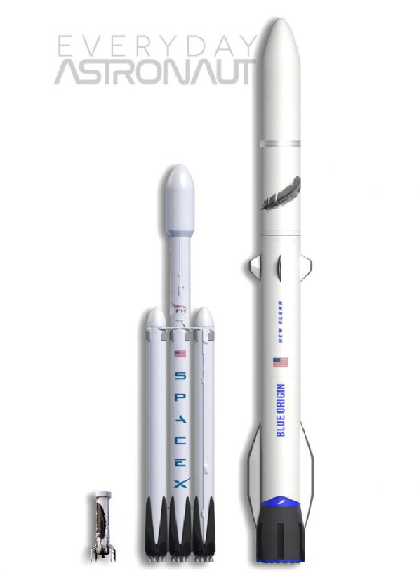 Image: New Glenn (right) compared to the SpaceX Falcon Heavy (middle) and the New Shepard booster (left). Credit: Everyday Astronaut