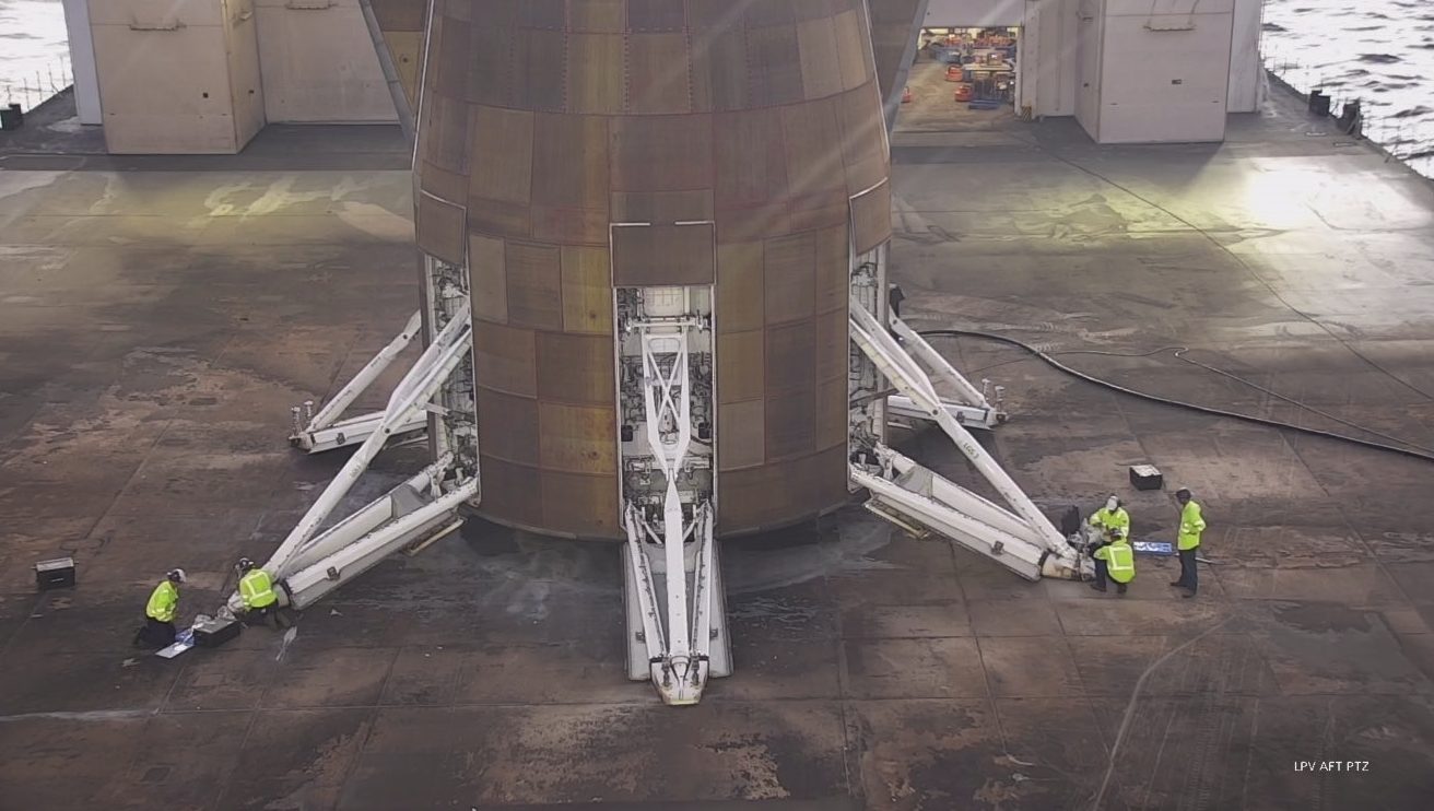 Image: New Glenn securing itself to the barge. Credit: Blue Origin