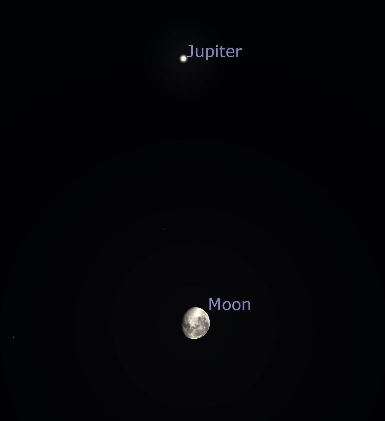 Image: Jupiter and the Moon as seen on December 8. Credit: Stellarium