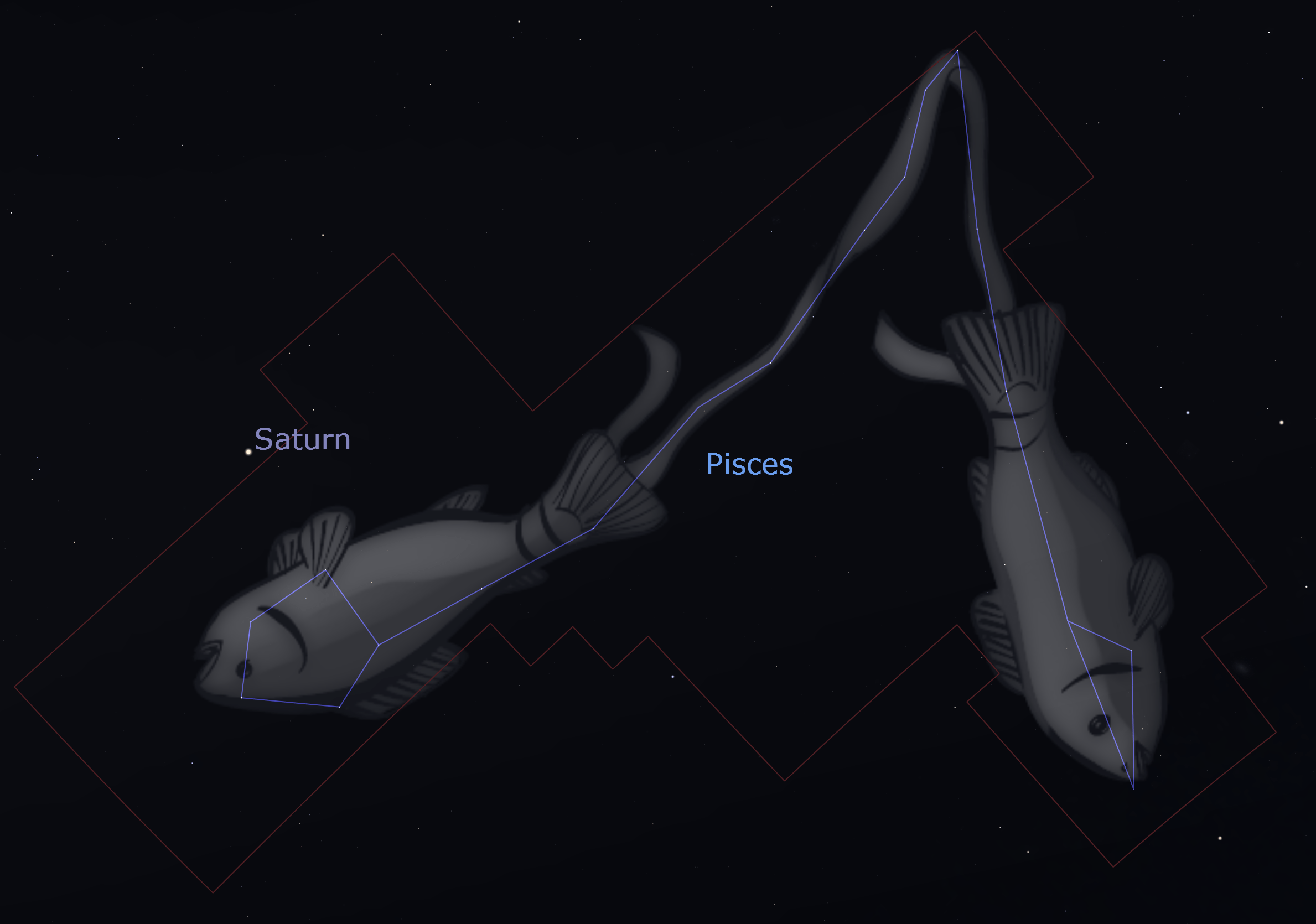 Image: Pisces, the fish, with Saturn nearby. Credit: Stellarium